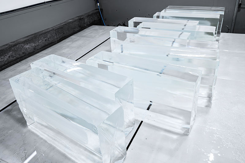 このように時間と手間をかけて、堅く溶けにくい無色透明で美しく、そして不純物が殆どない無味無臭で安心・安全な純氷ができあがります。